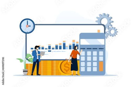 Happy woman dancing at home alone. Vintage tape recorder. Concept illustration. Vector web site design template. CD disk, tape player. Woman listening music.
