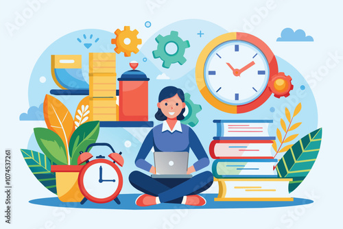 Happy woman opened gift box with new phone. Holiday present concept illustration. Vector web site design template. Woman makes postcards by herself.