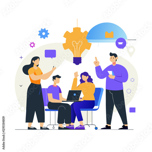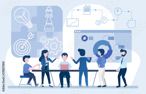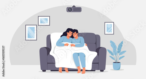 Young man sending present online for his girlfriend staying at home in quarantine, flat vector illustration. Happy woman receiving teddy bear gift from her boyfriend. Online gift delivery service.
