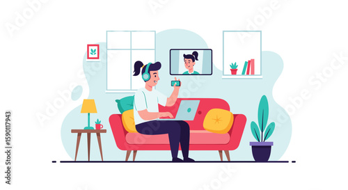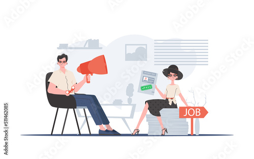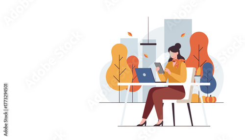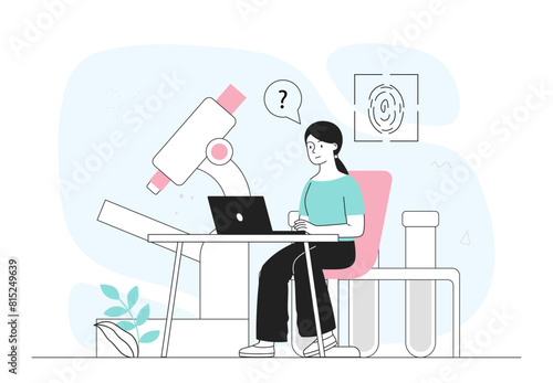 Hard work concept vector flat illustration. Office situation. Unhappy tired and overworked woman sitting at table and having really bad headache. Work burnout, mental fatigue, emotional exhaustion.