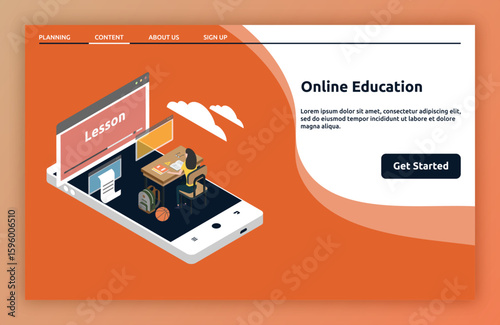 Hardware online shop landing page website template. Vector isometric smartphone with tools shop and salesman. Online shopping, e-commerce concept.