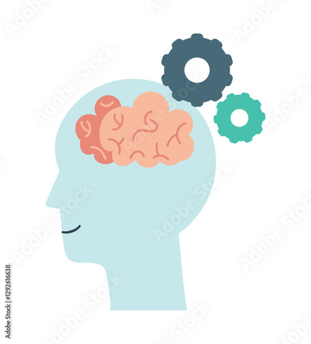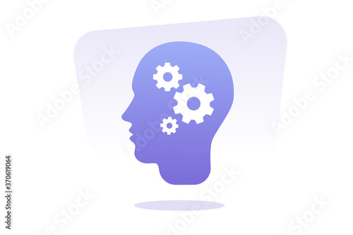 Man and woman head silhouettes with gears and flowers inside. Vector illustration in paper art style.