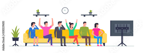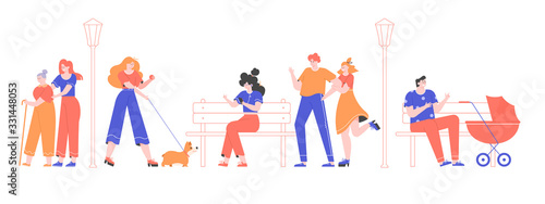 Healthy life concept vector flat illustration. Healthy lifestyle in big letters, male and female active cartoon characters practicing yoga, running, riding scooter, bicycle, playing tennis.