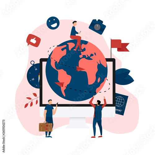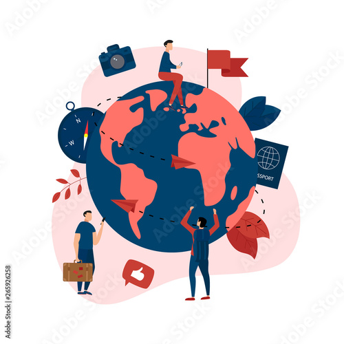 Doctor female using stethoscope listening to planet Earth globe with body temperature thermometer in human hands palms, vector flat illustration. World Health Day, save our planet, global health care.