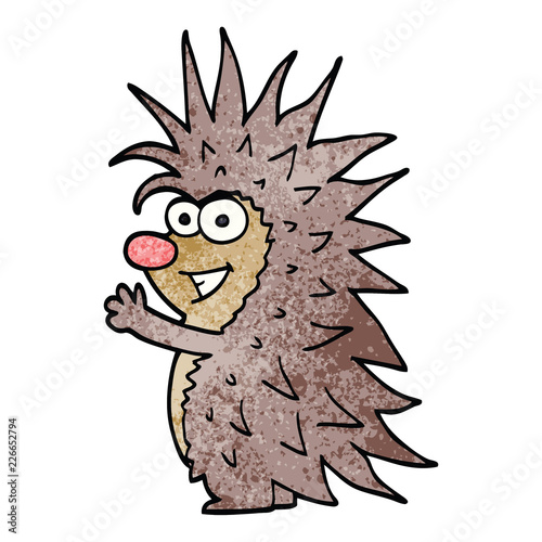 Hedgehog superhero vector. Cute cartoon animal super hero icon illustration. Strong brave prickly character in funny mask and costume isolated on white background. Doodle for birthday greeting card