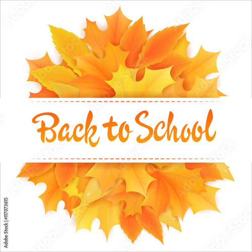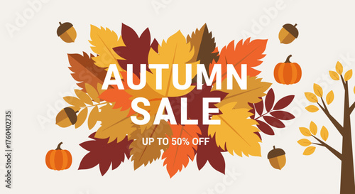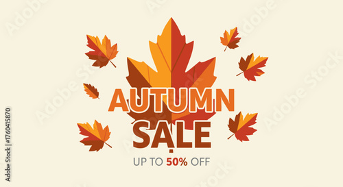 Hello Autumn card hand lettering typography, vector illustration in paper art craft style. Beautiful paper cut autumn composition with maple, oak tree leaves, hedgehog and umbrella.