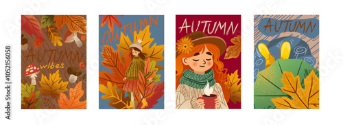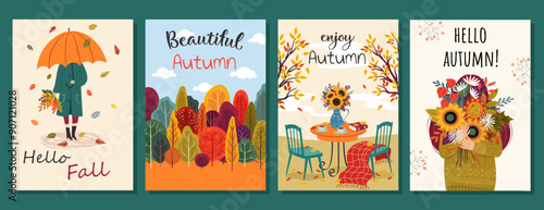 Hello Autumn typography design made with leaves and floral elements. Vector paper cut style illustration. Can be used for business advertising, banners, posters. Fall maple leafs and foliage.