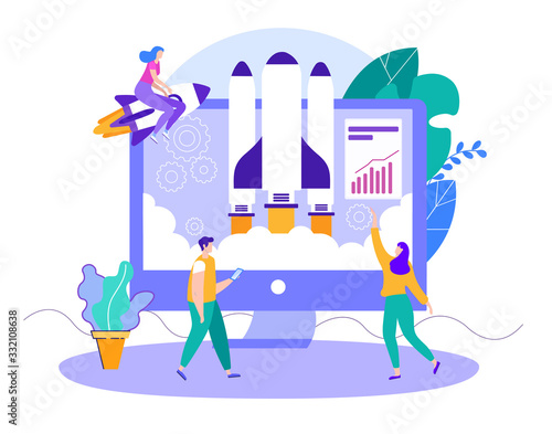 Helpful tips, business woman speaking through megaphone, man asking questions via laptop. Vector flat illustration for web banner, website page etc. Frequently asked questions FAQ concept