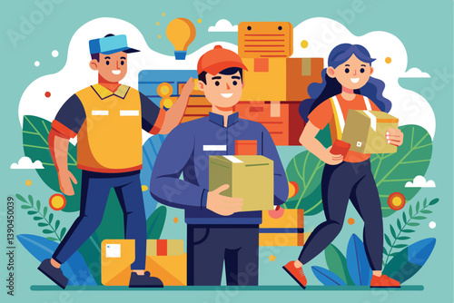 Vector illustration of hiking tourist couple walking with backpacks. Outdoor sports flat style design element.
