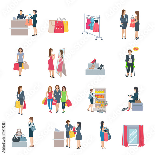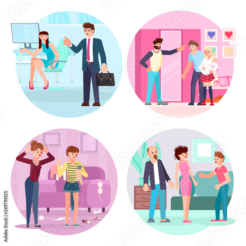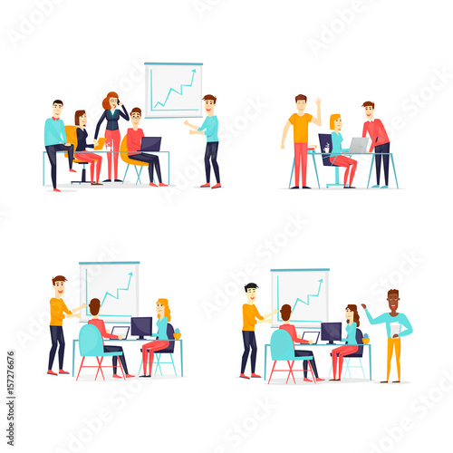 Hiring process icon set. Vector flat illustration. Employer and candidates with cv or resume. Human resources, job offer, recruitment, hr management, job interview concept.