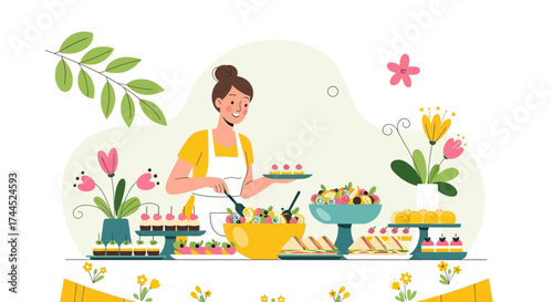 Hobby landing page design, website banner template set, flat vector illustration. People enjoying their hobbies. Happy women caring for houseplants, choosing fabric for sewing trying it on mannequin.