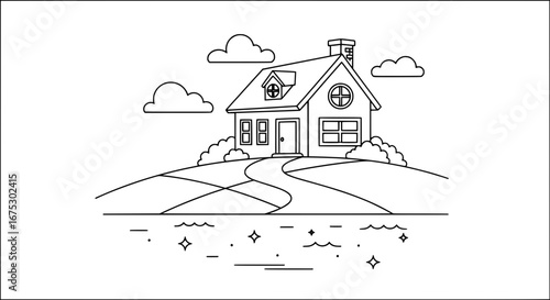 Holiday Christmas tree concept line banner. Vector illustration linear style design. Graphic icons with toys and gifts elements