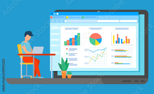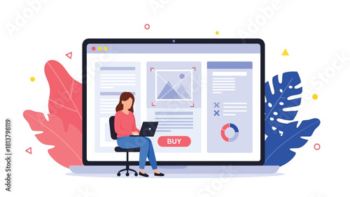 Kitchen and home appliances online sale, vector illustration. E-commerce concept, online shopping composition with micro characters buying household equipment tv sets, kettle from huge computer store.
