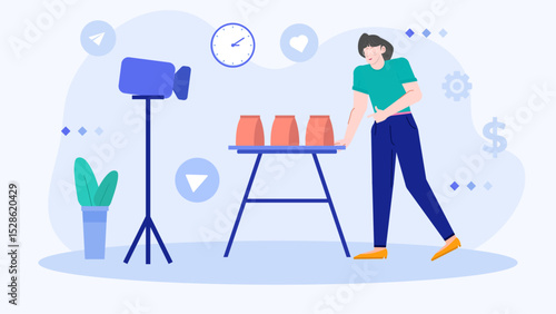 Professional handyman repairman electrician fixing broken oven in kitchen, vector illustration. Home appliances repair and service concept for web banner, website page etc.