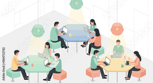 Home cleaning scene, flat vector illustration. People cleaning hall. Professional cleaner worker characters doing housework washing window, floor, vacuuming furniture. Housekeeping services.