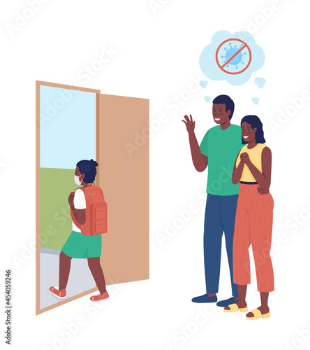 Vector illustration of man delivering goods in cardboard boxes to buyer female. Home delivery services flat style design element.