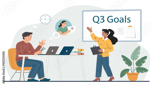 Giant smartphone, human hand, tiny female cartoon characters holding potted houseplant, lamp, watering can, garland, flat vector illustration. Home improvement, home decorating mobile apps.