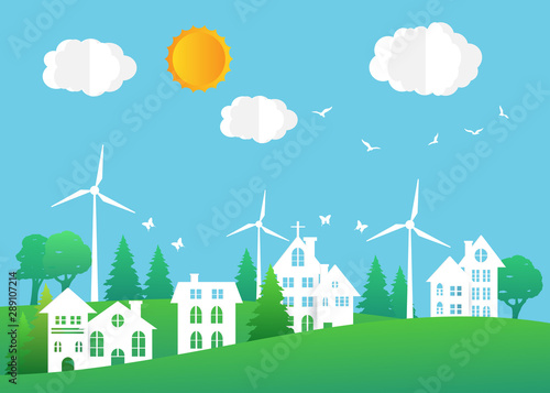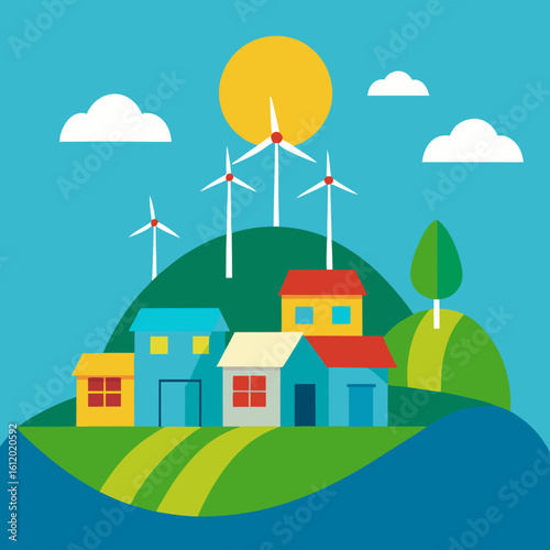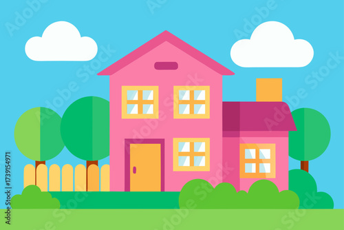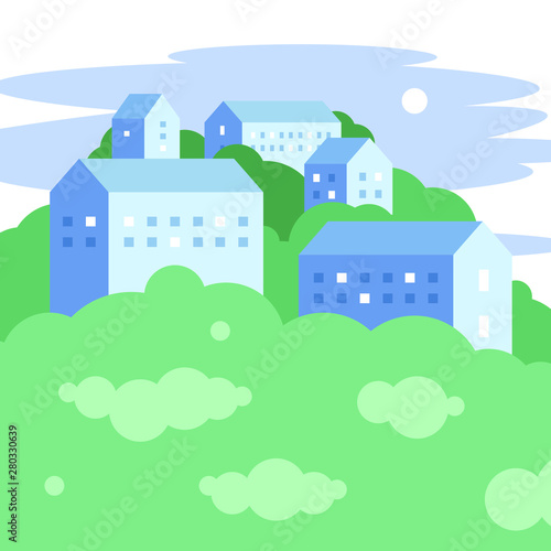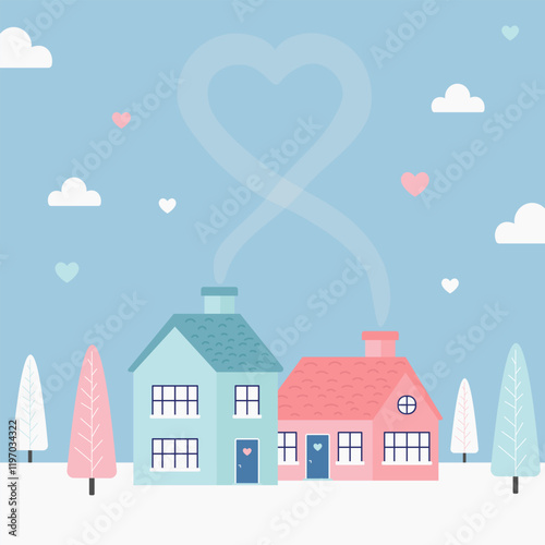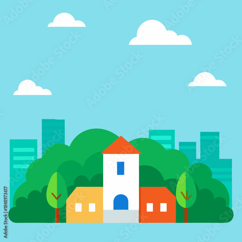 Home Insurance concept. Vector illustration in flat design. Hand holding umbrella to protect house from rain.