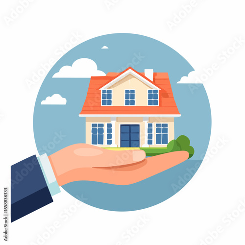 Home insurance concept. Vector illustration in flat design. Hands protecting house. Insurance business.