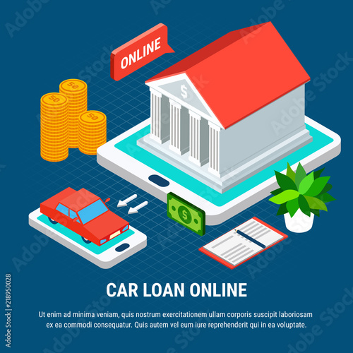 Home insurance online, vector illustration. Smartphone with insurance policy, shield, burning house building, finger tapping buy button. Isometric composition for poster, banner, website page, etc.