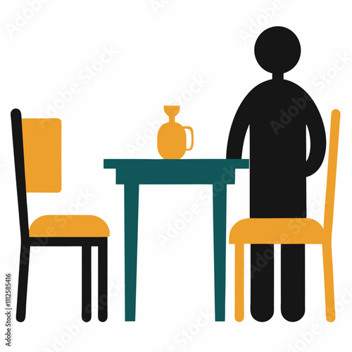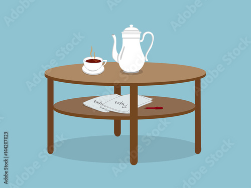Home office interior with coffee-table, laptop computer and armchair vector icon isolated on white background. Viral pandemic concept.