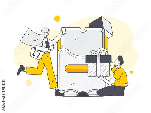 Male characters, home relocation company workers loading moving truck, vector flat style design illustration. Relocation, moving house, furniture delivery services concept.