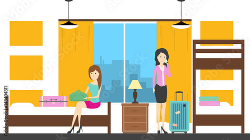 Home repair and improvement. Furniture repair, restoration. Repairman, workman team painting wall in living room, carrying sofa, flat vector illustration. Handyman service. Home renovation.