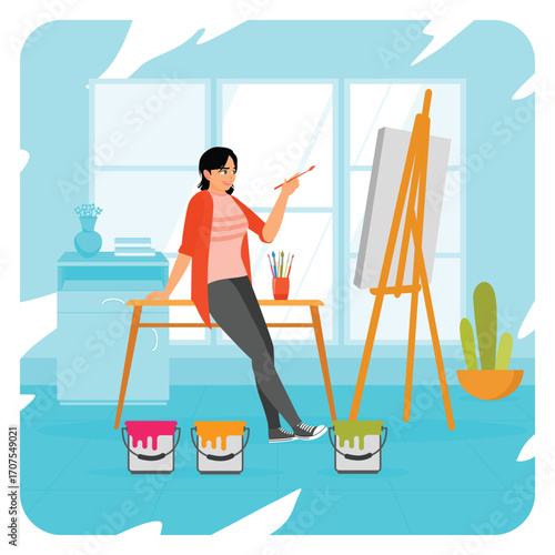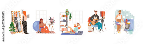 Male and female characters painting wall and installing laminate, vector illustration. Home remodeling, renovation and repair services concept for web banner, website page etc.
