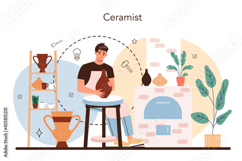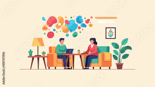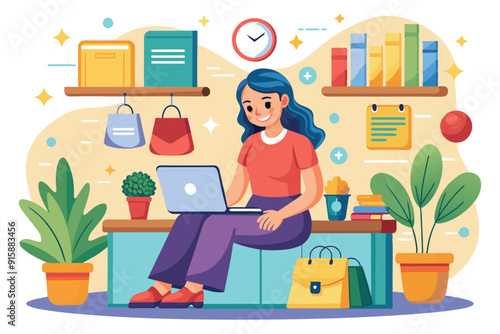 School girl watching video lesson sitting at table in front of laptop computer, vector flat illustration. Home schooling or home education. Remote distance education during coronavirus quarantine.