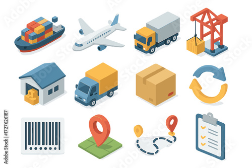 Home security icon set. Vector flat isometric illustration isolated on white background.