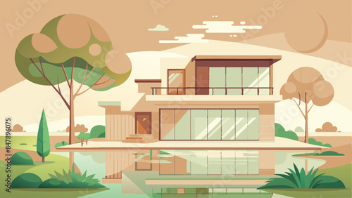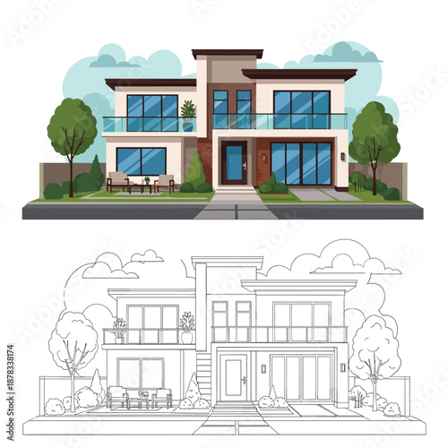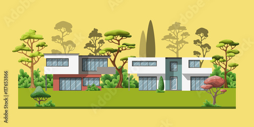 Home yard vector. House backyard illustration. Garden, fence, lawn, residential apartment and bbq equipment background