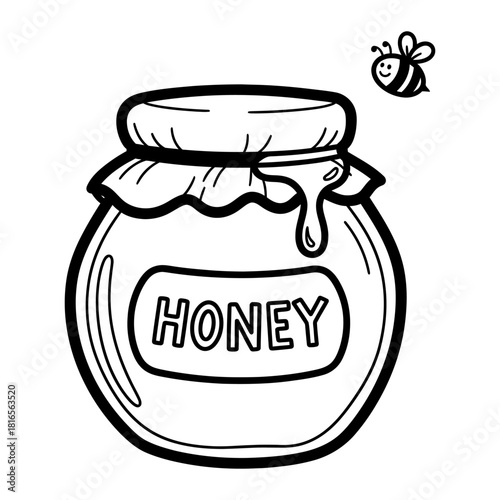 Honey jar vector. Glass pot with sweet bee food product under cap illustration. Gold sugar dessert nectar conserve isolated on white background. Beekeeping and apiculture symbol