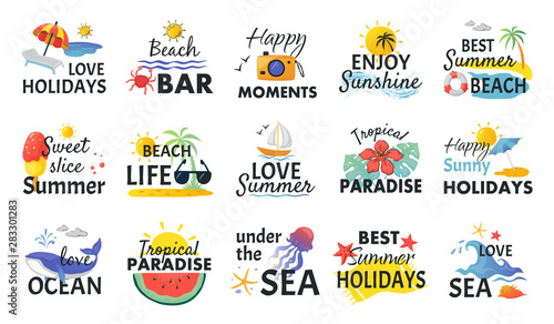 Honey set, vector flat illustration isolated on white background. Bee, beehive, honeycomb, jar and eco natural fresh floral honey hand lettering. Sweet organic food, beekeeping, apiculture concept.