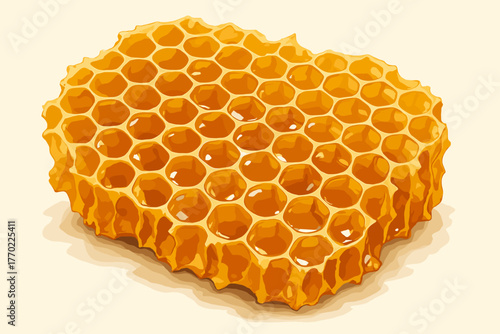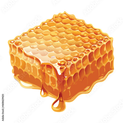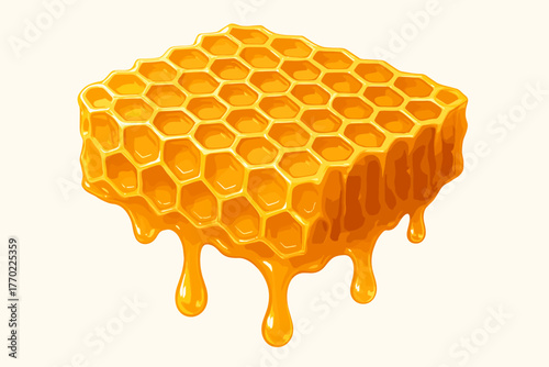 Honeycomb cartoon. Bee honey comb icon. beehive frame with hexagon shape wax cell and dripping sweet gold honey syrup isolated on white background