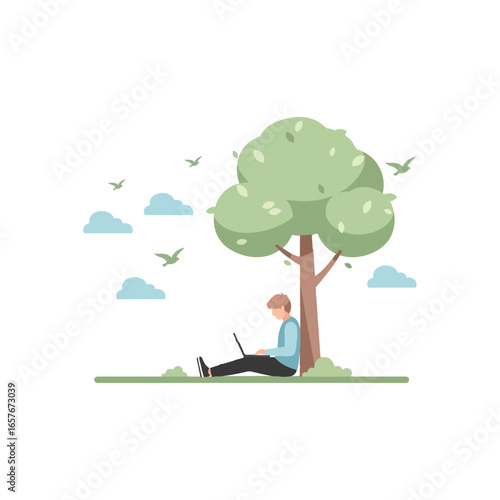 Vector illustration of man doing push-ups on horizontal bar in the park. Outdoors workout flat style design element.