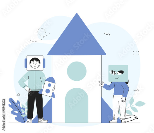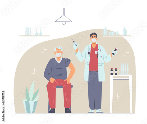 Hospital concept. Ophthalmologist provides medical check up for patient. Doctor cabinet interior. Vector illustration in flat style. Design elements and icons.