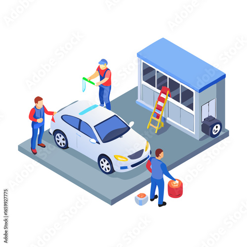 Medical robots, flat vector isometric illustration. Doctor, nurse hospital robots providing medical assistance to patients. Artificial intelligence in healthcare and medicine.