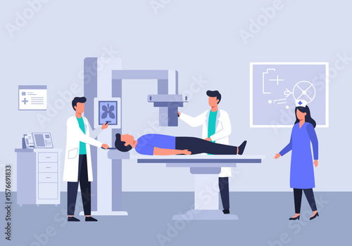 Hospital scene set, flat vector isolated illustration. Patients visiting doctors therapist, family physician. Medical care for disabled people. Hospital reception and body temperature screening area.
