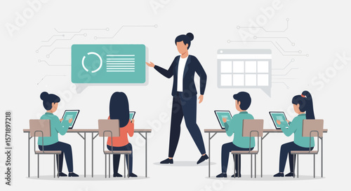 Hostel shared kitchen ad dining area with characters, vector illustration. Hostel business concept for web banner, website page etc.