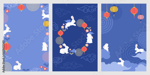 Vector vertical banner set with paper cut hot air balloons flying in the sky.