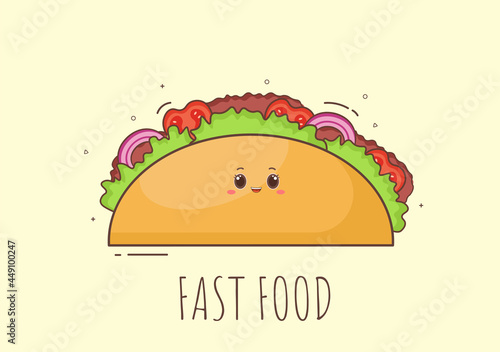 Hot dog cartoon character vector. Funny bun with sausage, ketchup and mustard isolated on white background. Cute fast food icon