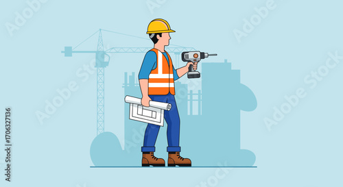 Vector illustration of hotel guest male holding backpack. Hotel people flat style design element, icon isolated on white background.