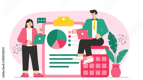 Hotel guests having breakfast in restaurant, flat vector isometric illustration. Breakfast buffet hotel services.