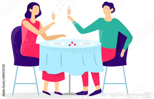 Hotel guests having breakfast in restaurant, flat vector isometric illustration. Breakfast buffet hotel services.