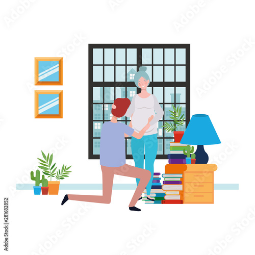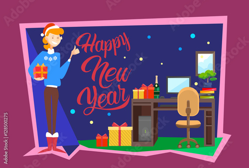 Vector illustration of bellhop standing next to luggage cart with suitcases. Hotel porter concept design element in flat style.