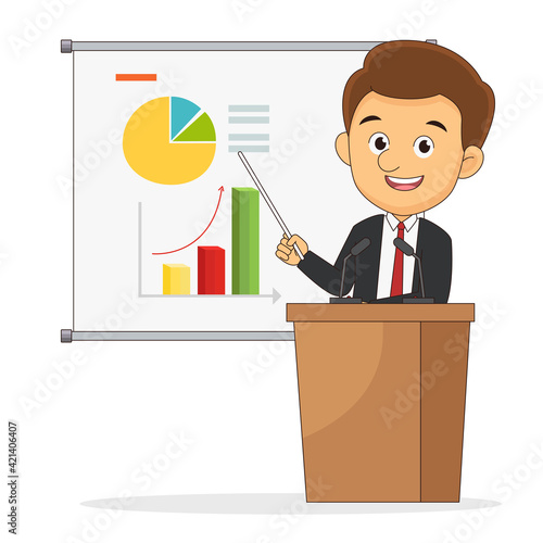 Vector illustration of hotel worker receptionist male standing at reception desk and talking on the telephone. Hotel people flat style design element, icon isolated on white background.