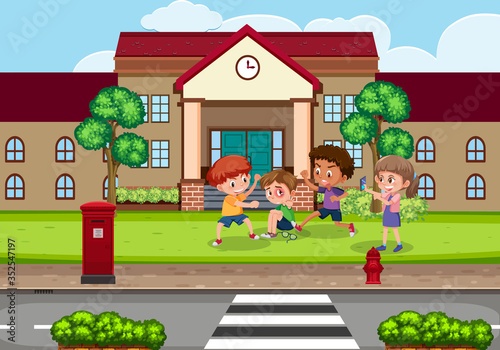 Hotel, resort swimming pool. People relaxing on inflatable ring, playing ball, sunbathing on chaise lounge, drinking cocktail, flat vector illustration. Summer vacation, travel, pool party.
