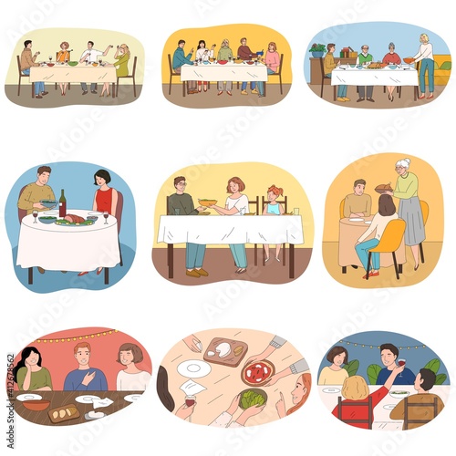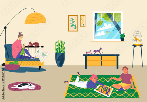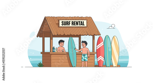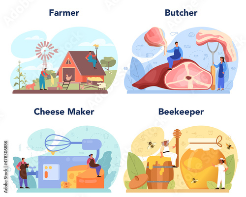 Hotel staff and services isolated vector scene. Administrator at reception counter desk, waiter in restaurant, doorman and room maid in uniform