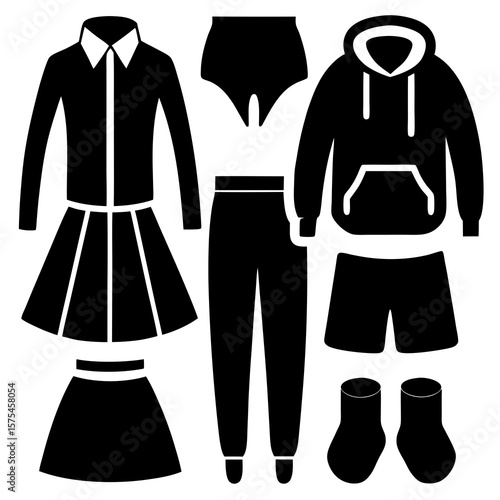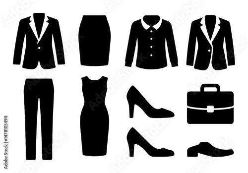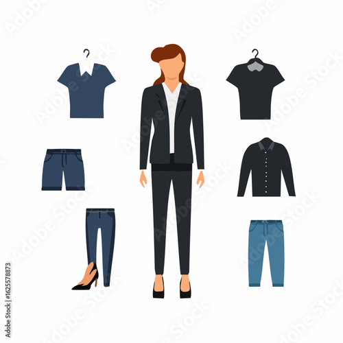 Hotel staff uniform set, vector illustration isolated on white background. Doorman bellman concierge professional working clothes, maid or housekeeper garment.