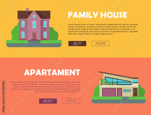 Construction 3D printing vector horizontal banner set. 3d printing private house and multi-storey building flat linear style design elements, web templates.